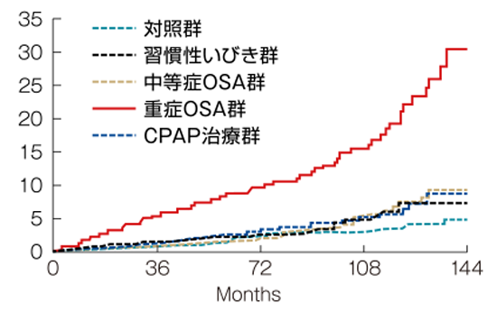 低酸素状態が続くことで心臓や血管に負担がかかり心筋梗塞や脳梗塞、狭心症発作、高血圧、不整脈などが起こりやすくなるほか、睡眠不足の影響で、体に過度なストレスが加わると、糖の代謝に関わるインスリンなどホルモンの働きが悪くなり、糖尿病や脂質異常症を招くこともあります。
